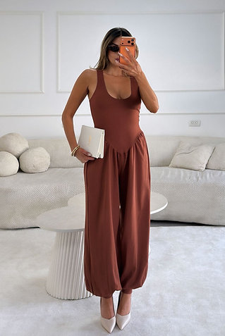 אוברול חלק עליון צמוד על הגוף עם כיווצים , חלק תחתון בגזרת בלון