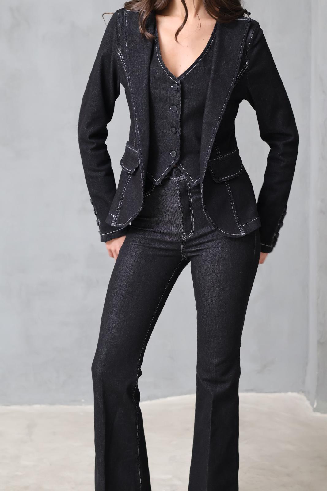 בלייזר ג'ינס בשילוב ווסט ג'ינס שחור דגם BLACK RAW