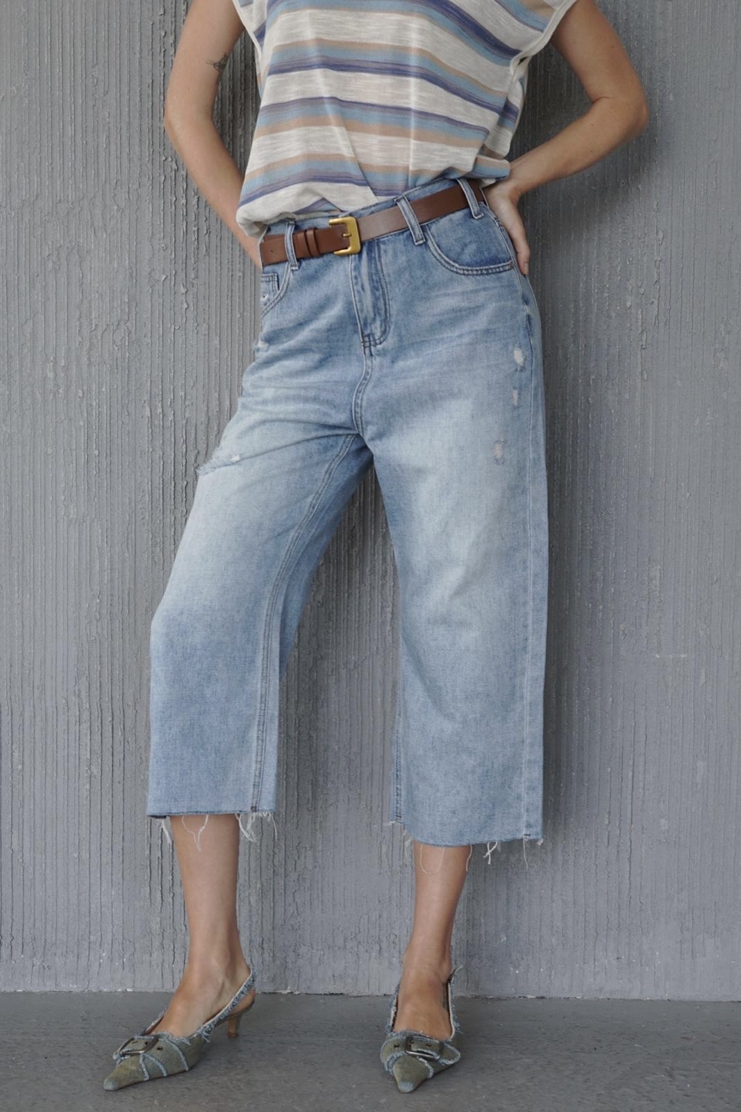 גינס 7/8 עם חגורה וקרעים בגזרה מחמיאה סיומת פרנזים של המותג ANTIGO