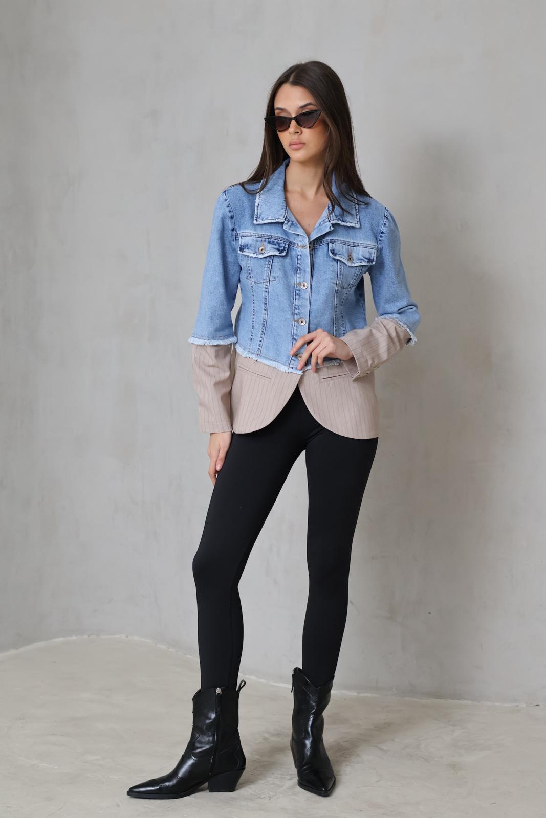 ג'קט ג'ינס בשילוב בד מחויט פסים של המותג ANTIGO