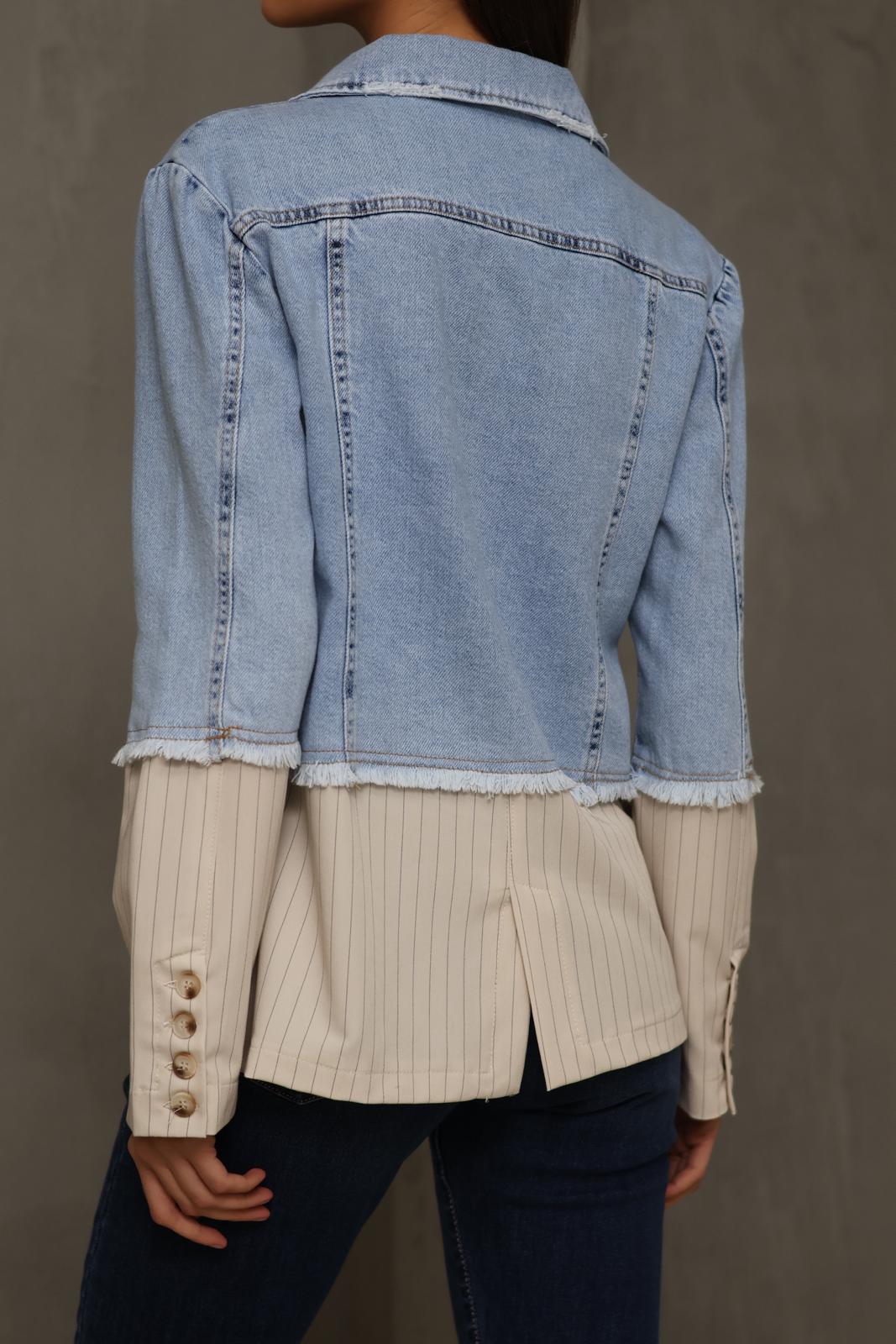 ג'קט ג'ינס בשילוב בד מחויט פסים של המותג ANTIGO