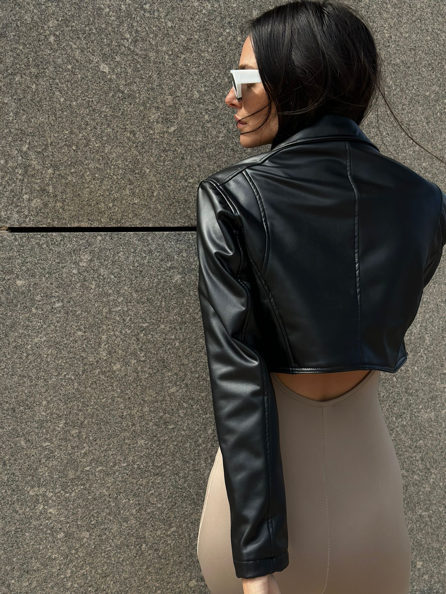 ג'קט דמוי עור רוכסנים-שחור