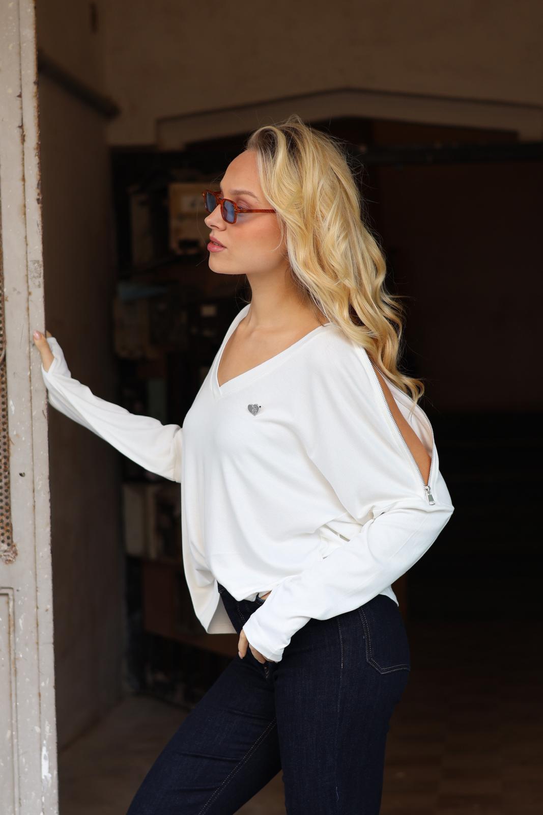 חולצת וי ZIP עם רוכסנים בכתפיות של המותג ANTIGO