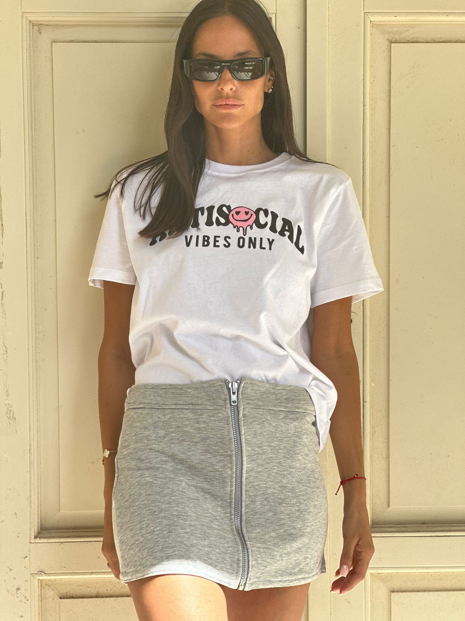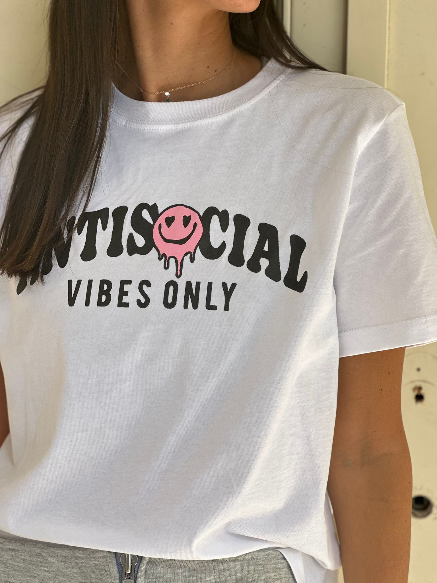 חולצת ביייסיק עם פרינט ANTI SOCIAL