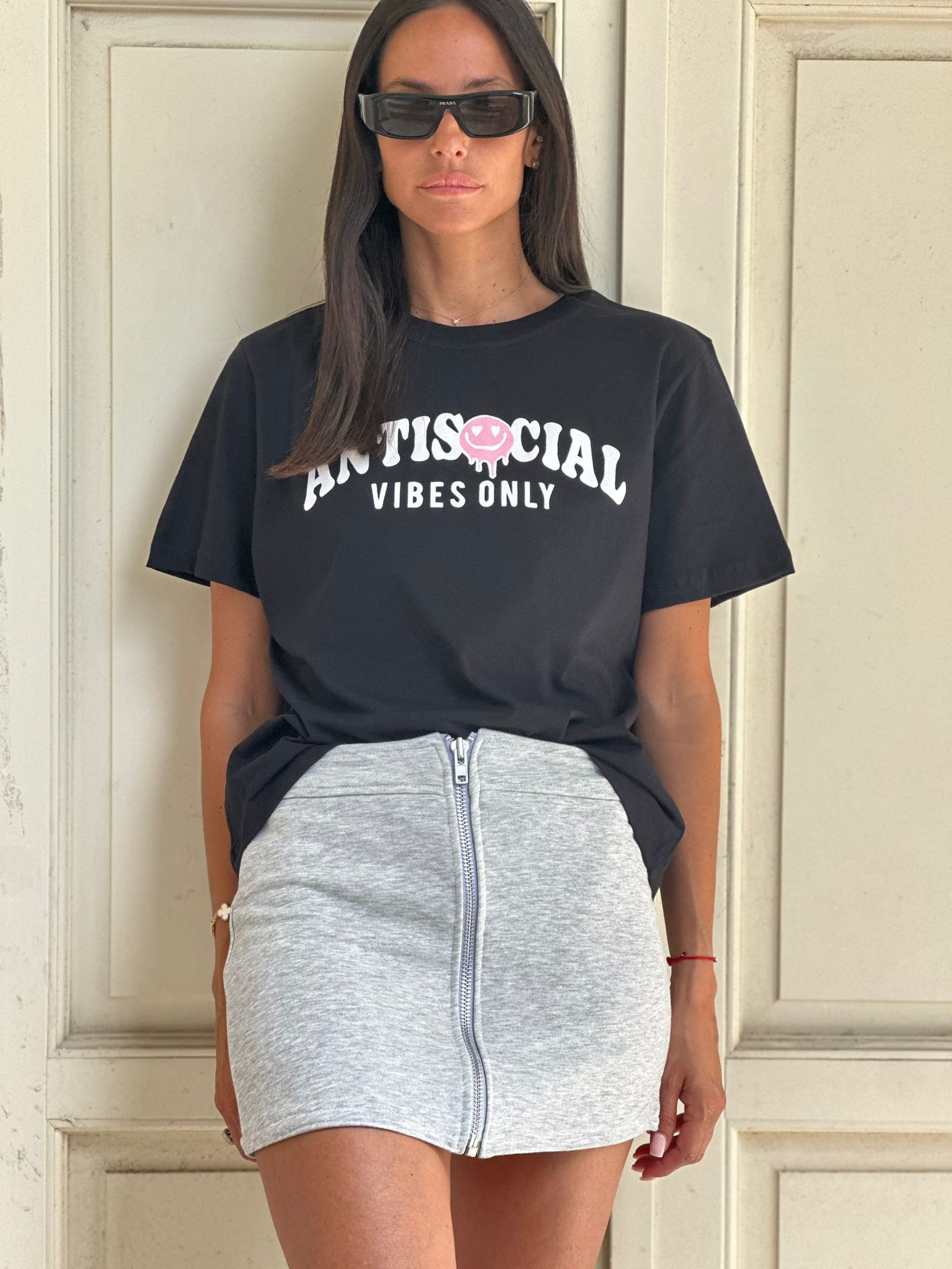 חולצת ביייסיק עם פרינט ANTI SOCIAL
