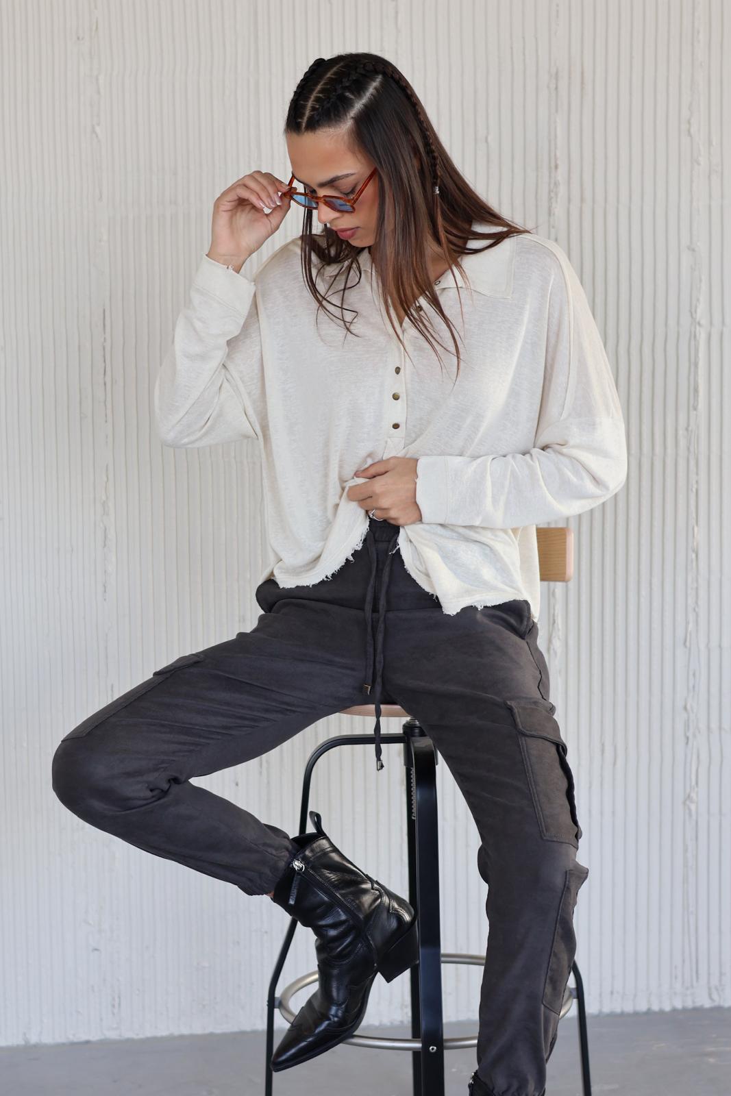חולצת שינה דמוי פשתן בגזרת OVERSIZE של המותג ANTIGO