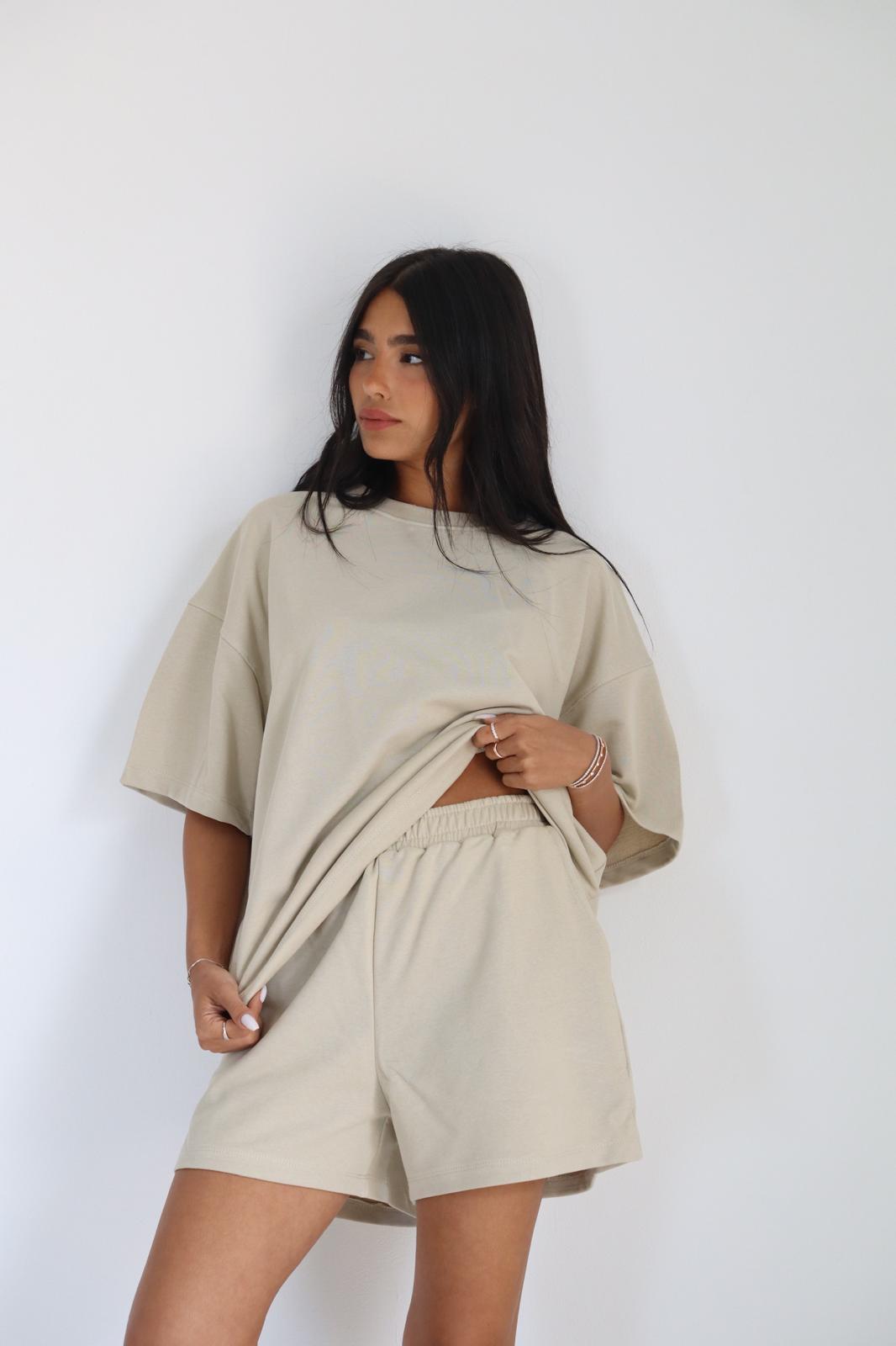 חליפת אוברסייז מכנס קצר ושרוול קצר