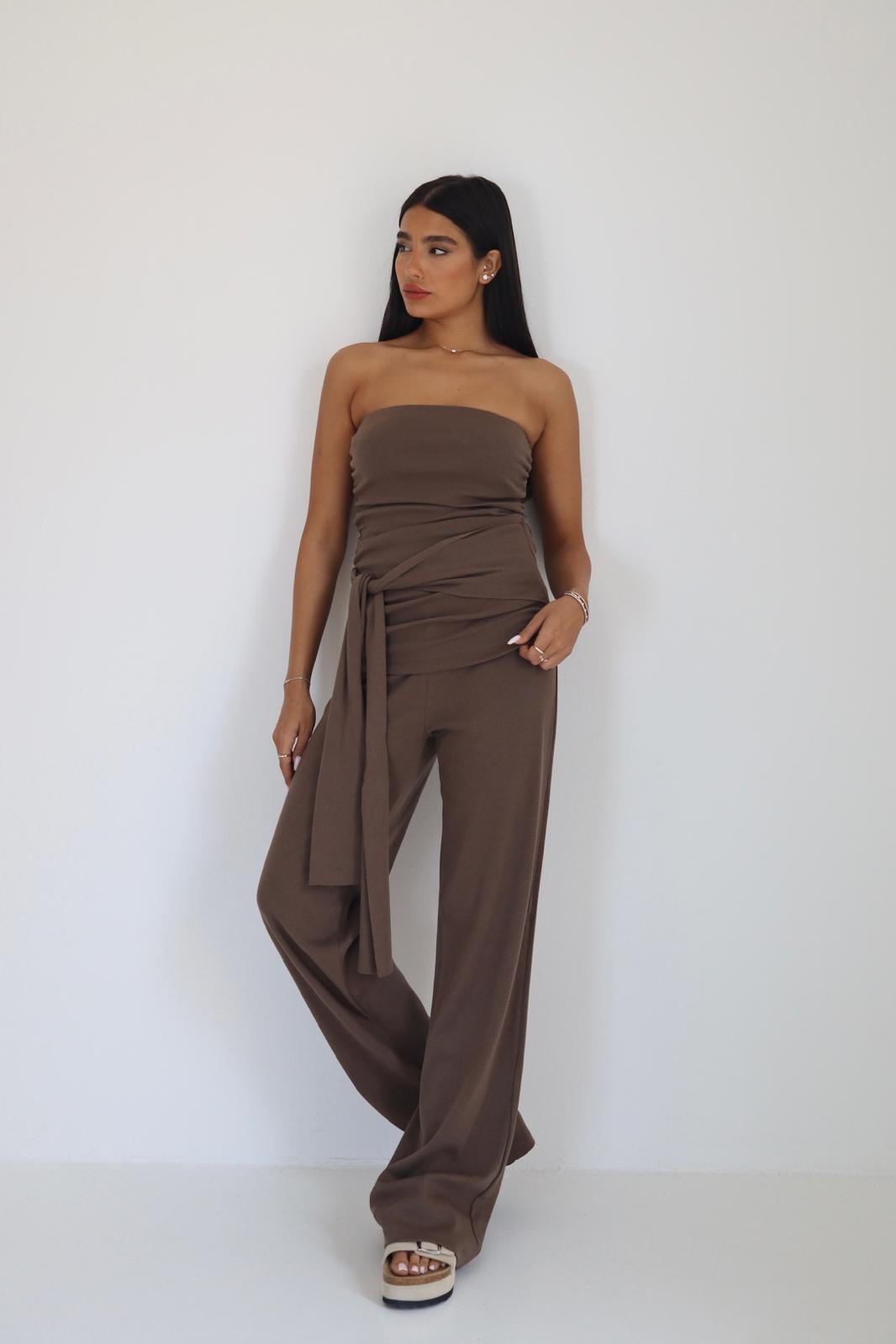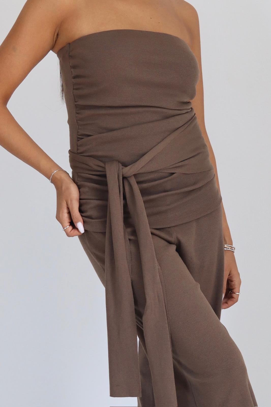 חליפת מכנס ארוך עם סטרפלס קשירה