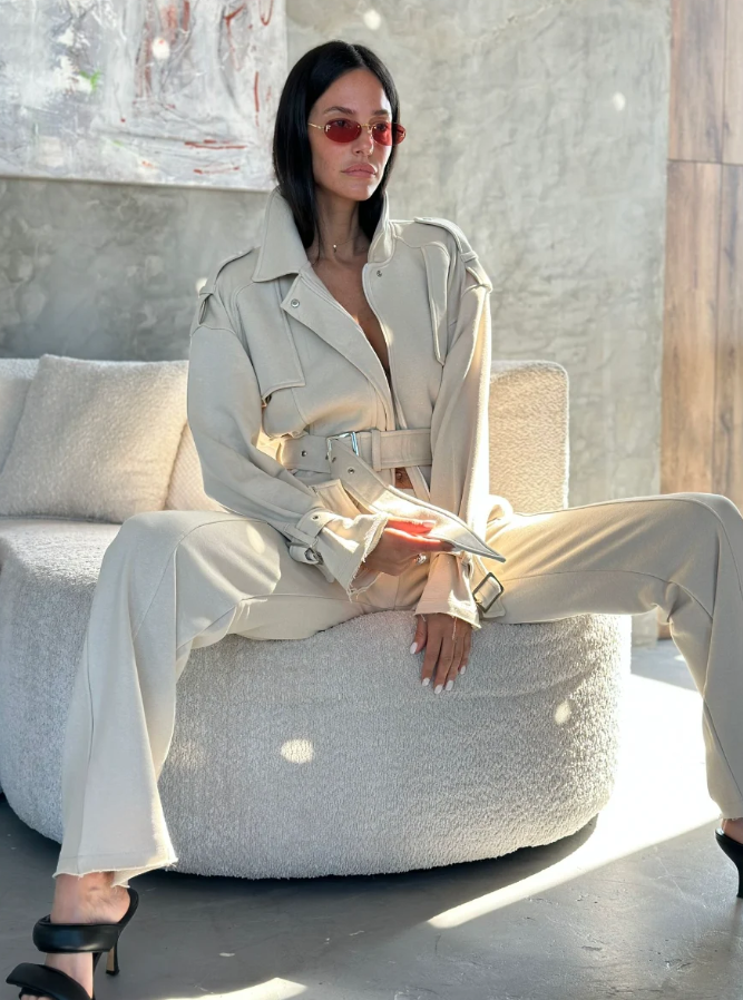 ג'קט בגזרת טרנץ עם חגורה תואמת