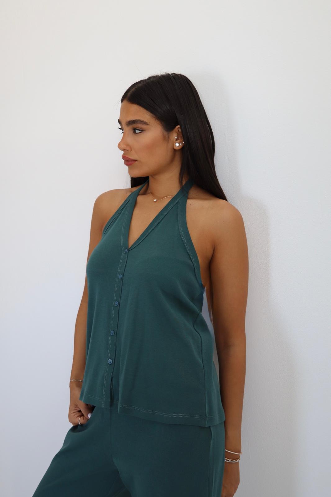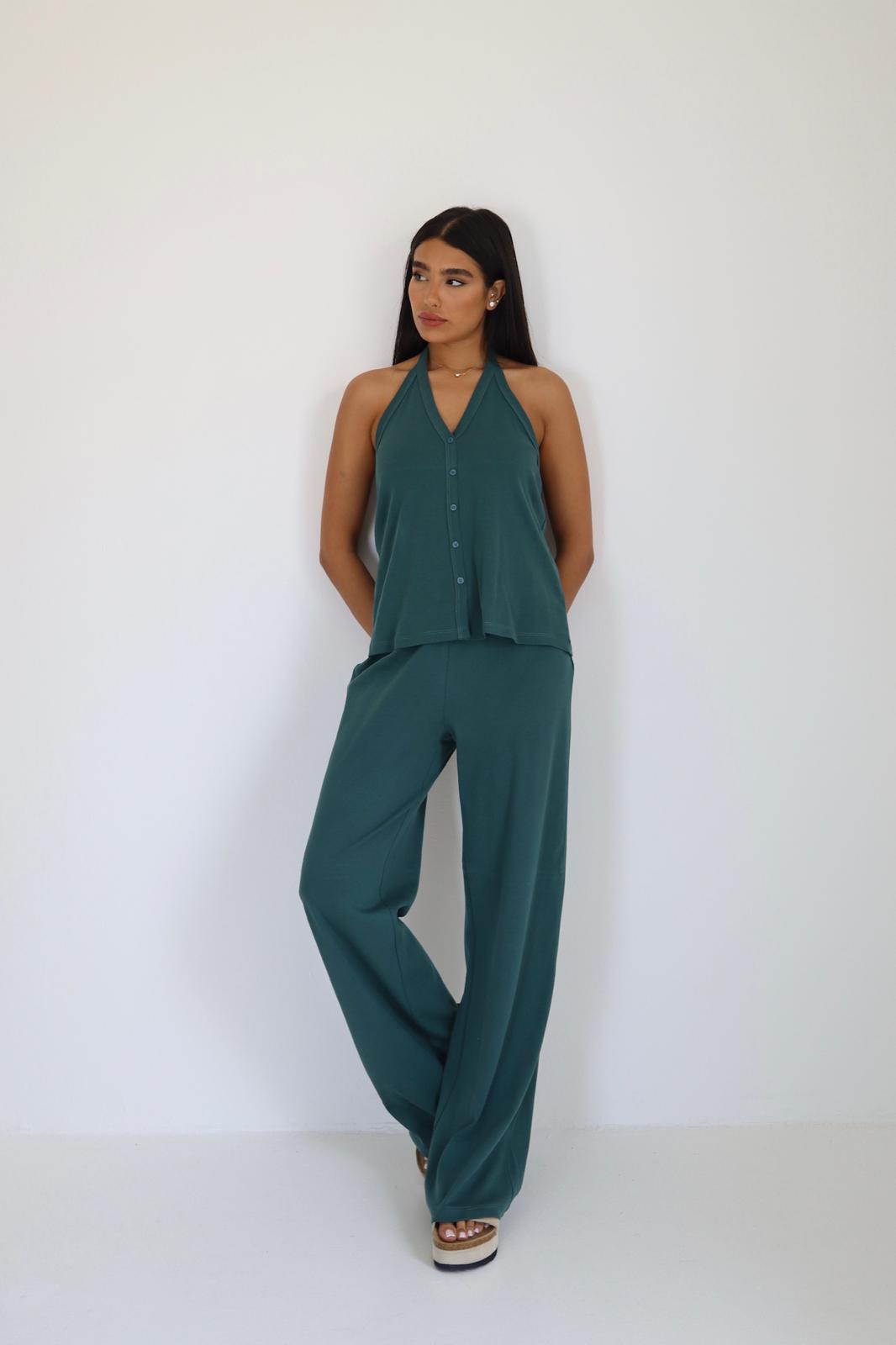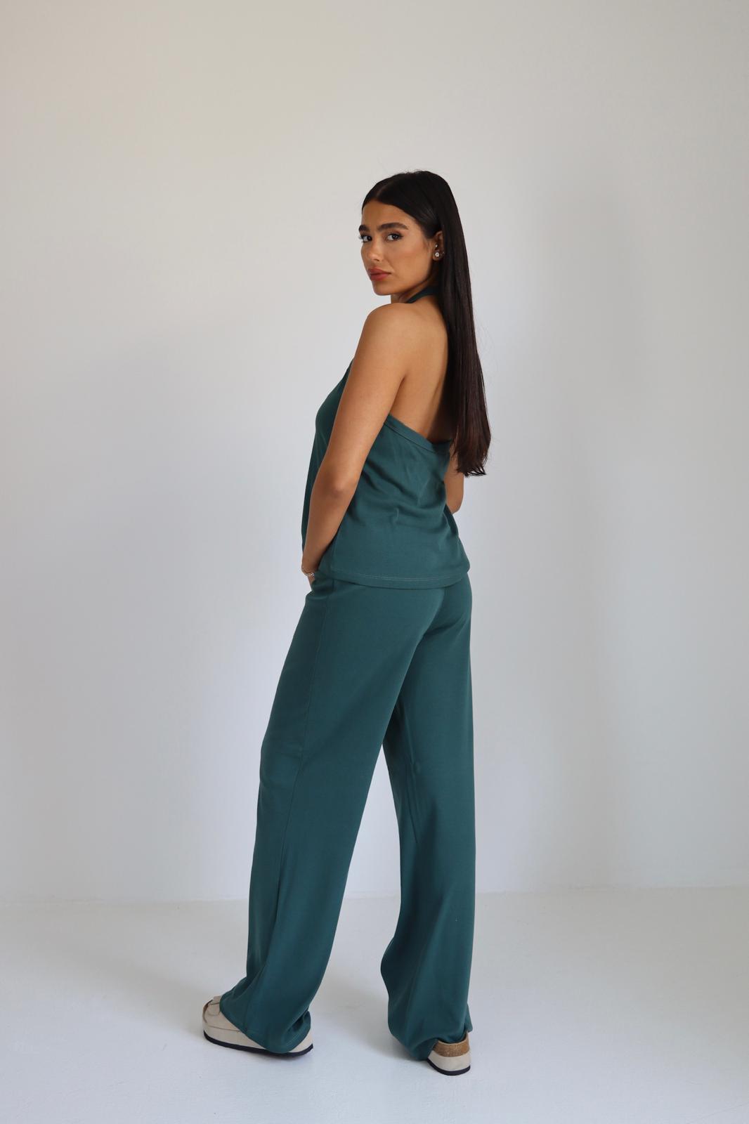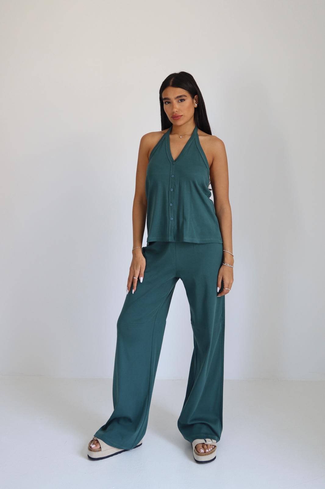 חליפת מכנס ארוך וגופית קולר עם כפתורים