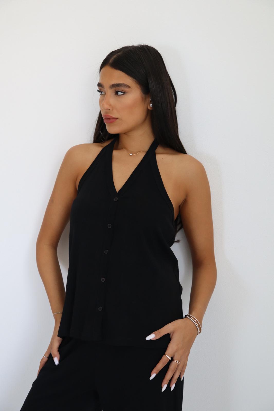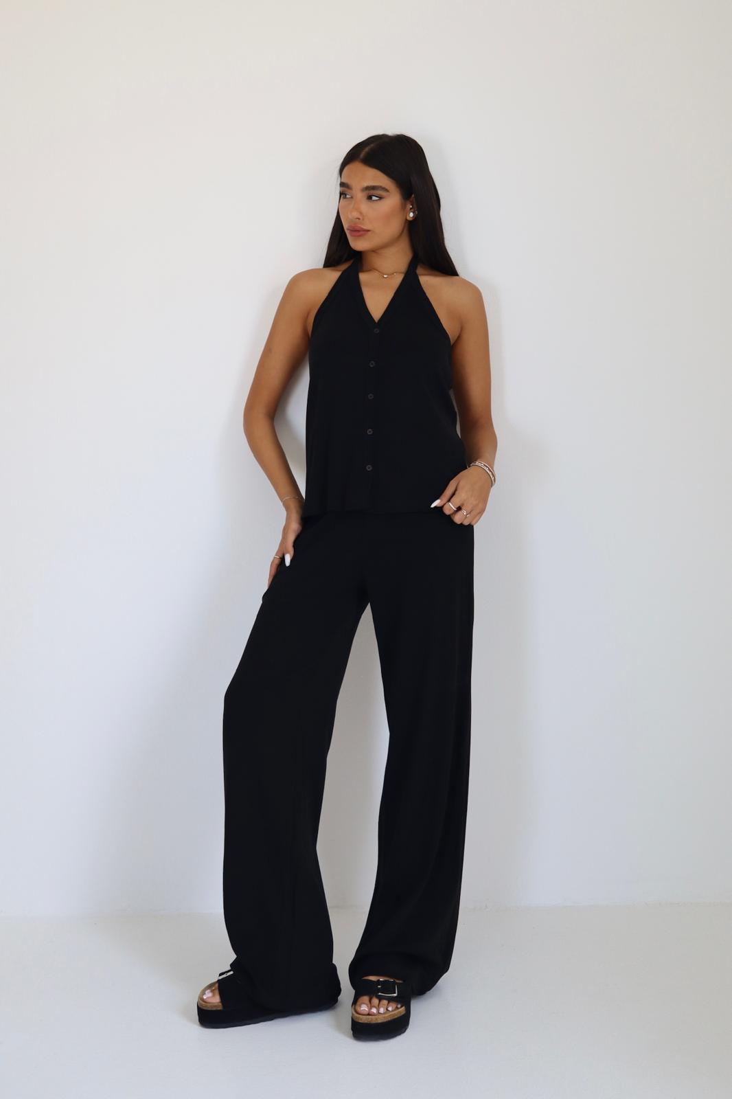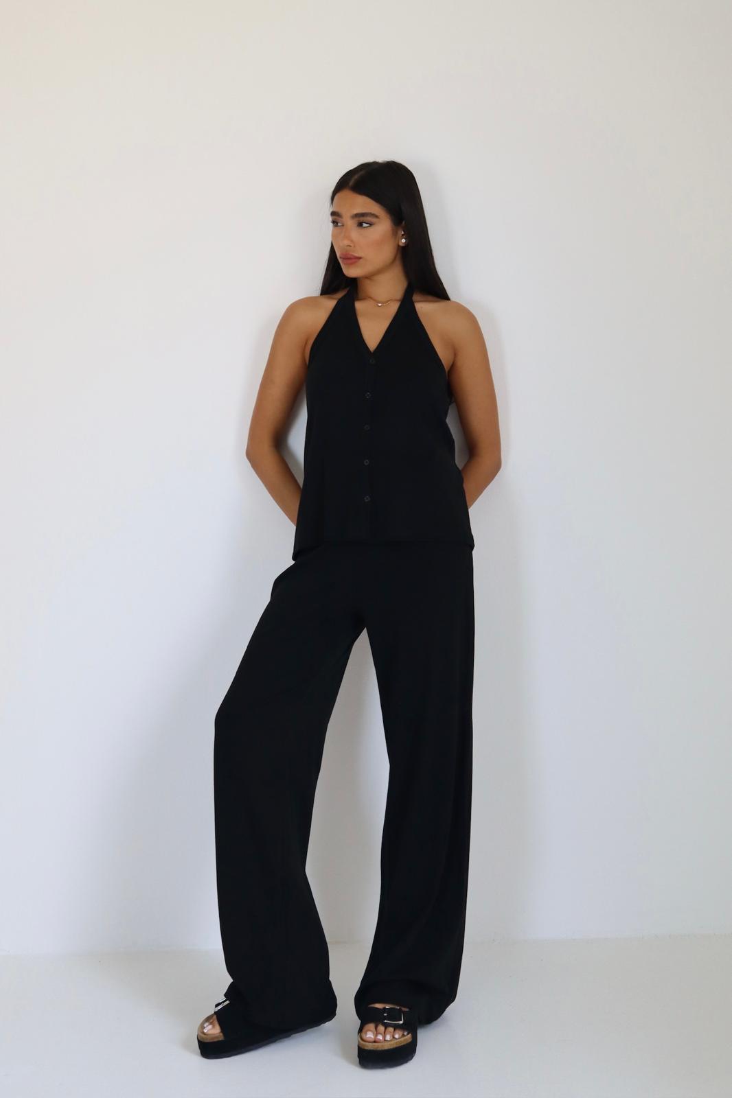 חליפת מכנס ארוך וגופית קולר עם כפתורים