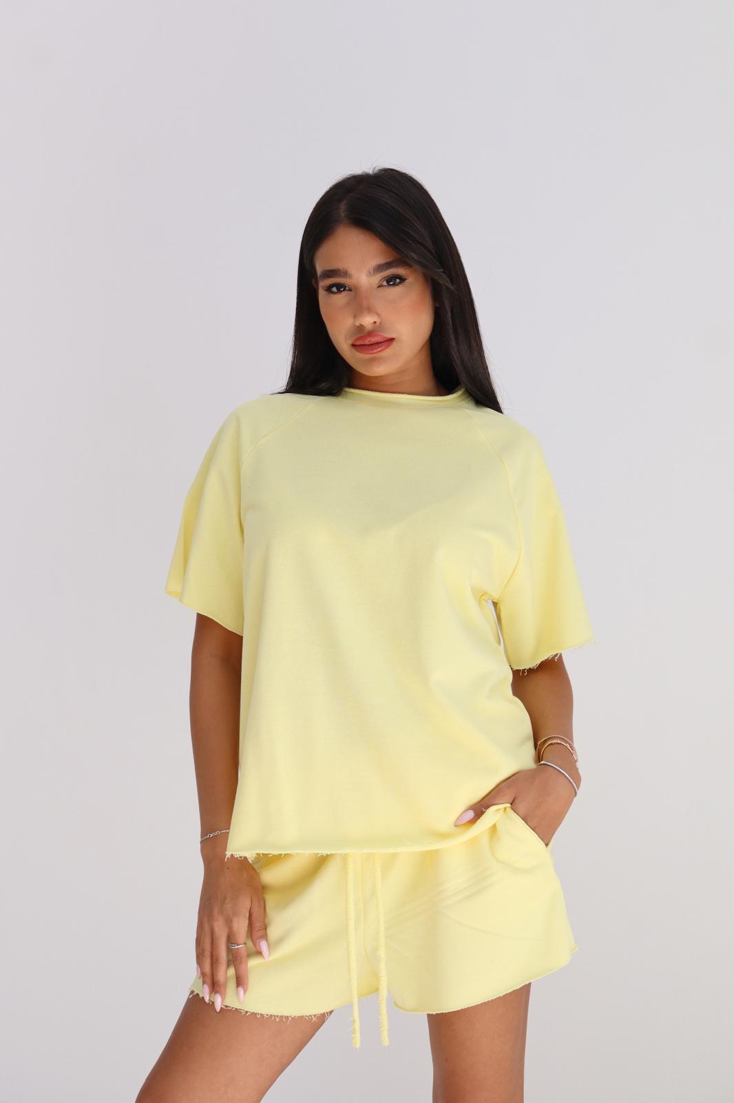 חליפת שורט גזור צהוב