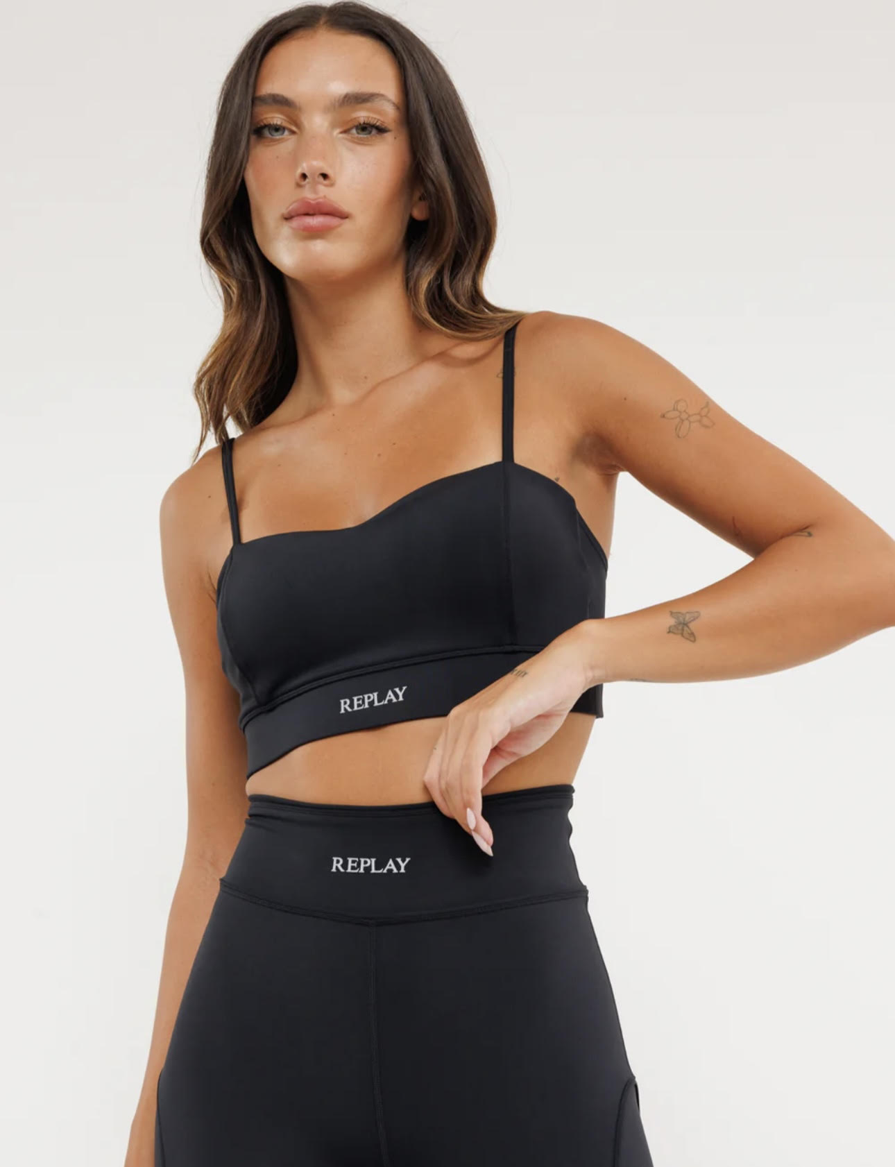 טופ ספורטיבי מחמיא ונוח מבית REPLAY בעיצוב מחמיא עם כתפיות דקות וגימור מושלם, הטופ מעניק תמיכה מקסימלית ונוחות שאין שניה לה. צבע שחור אלגנטי שהולך עם כל לוק, מושלם לאימונים או לכל הופעה יומיומית.
