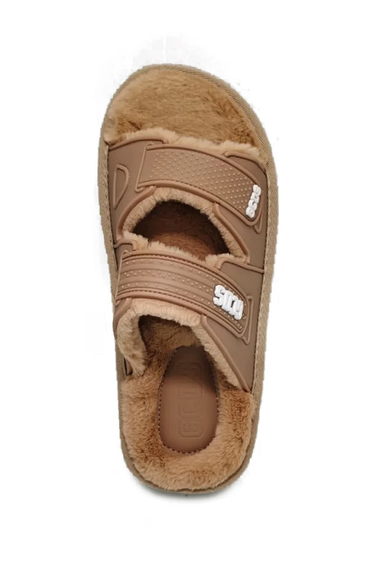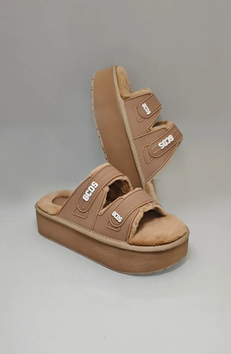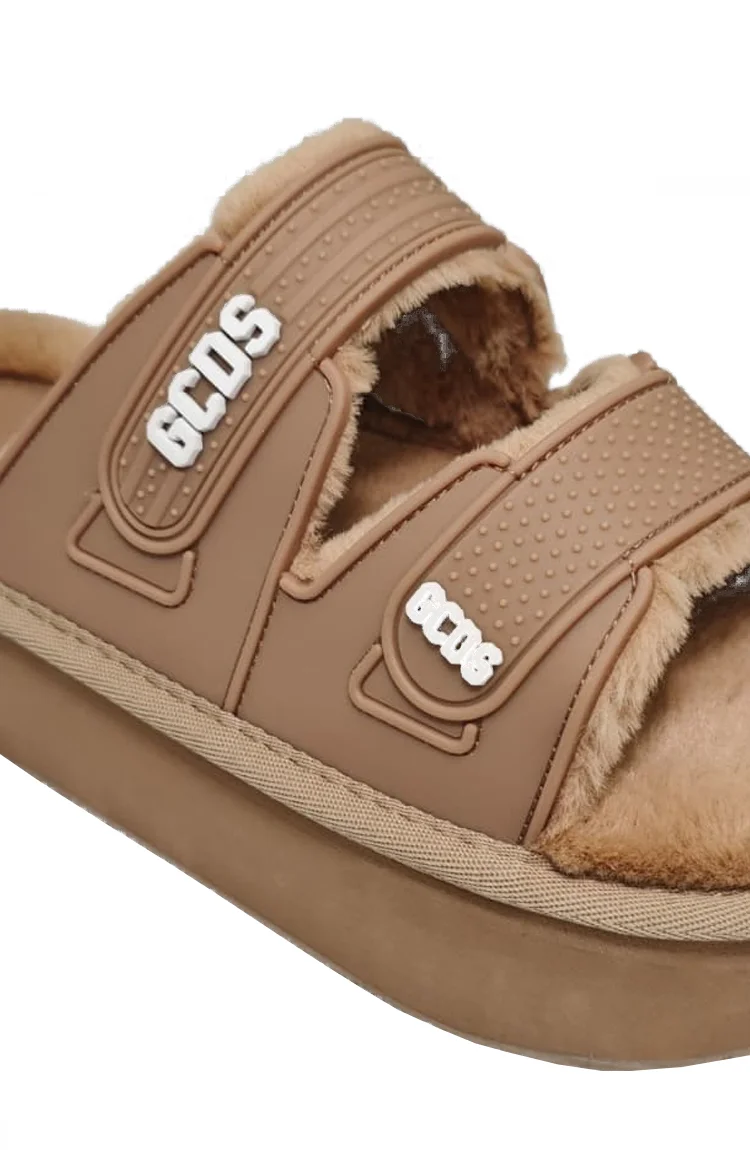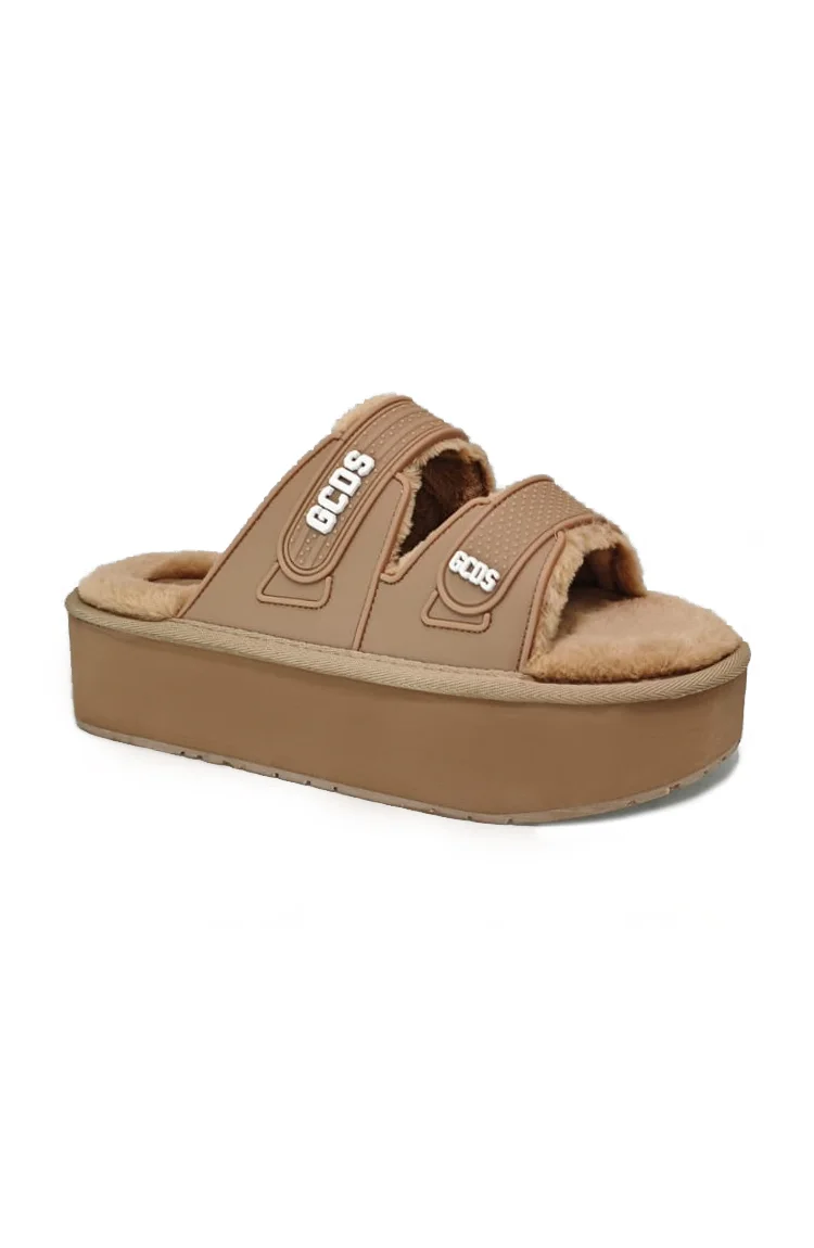 כפכפי פלטפורמה FURRY SLIDES. GCDS חום בהיר
