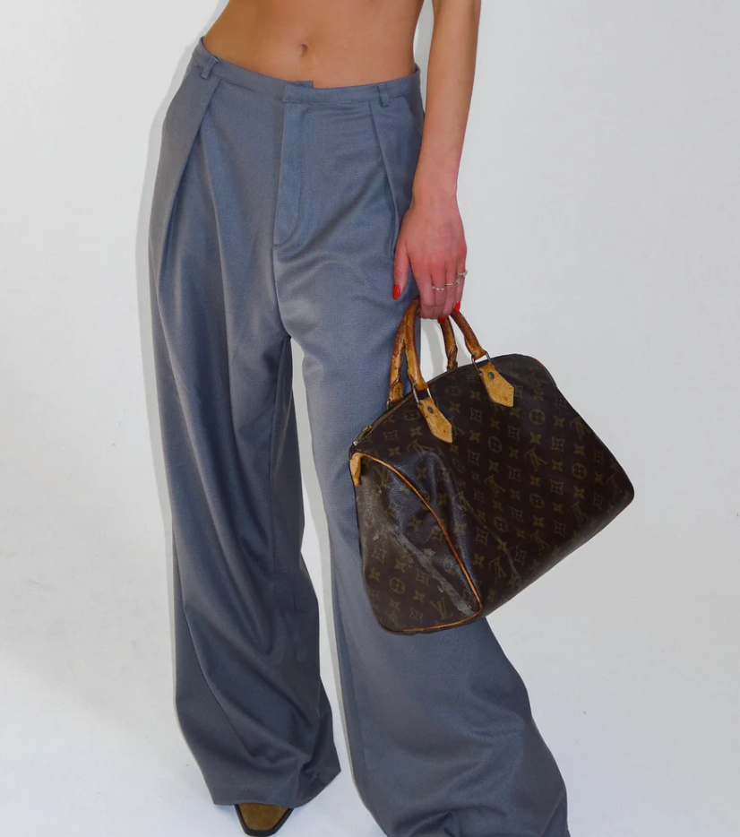 מכנסיים בגזרה מחוייטת ובד נשפך בסגירת רוכסן וטיקטק