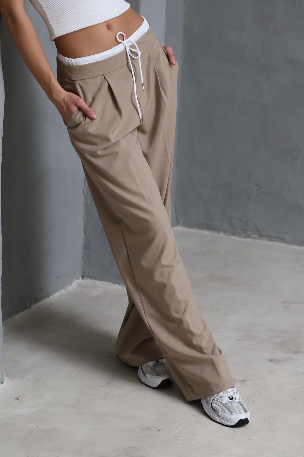 מכנס מתרחב בשילוב גומי במותן עם שרוך של המותג ANTIGO