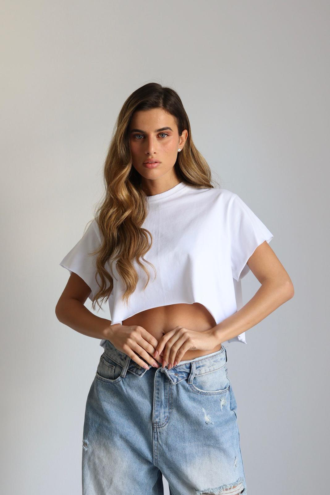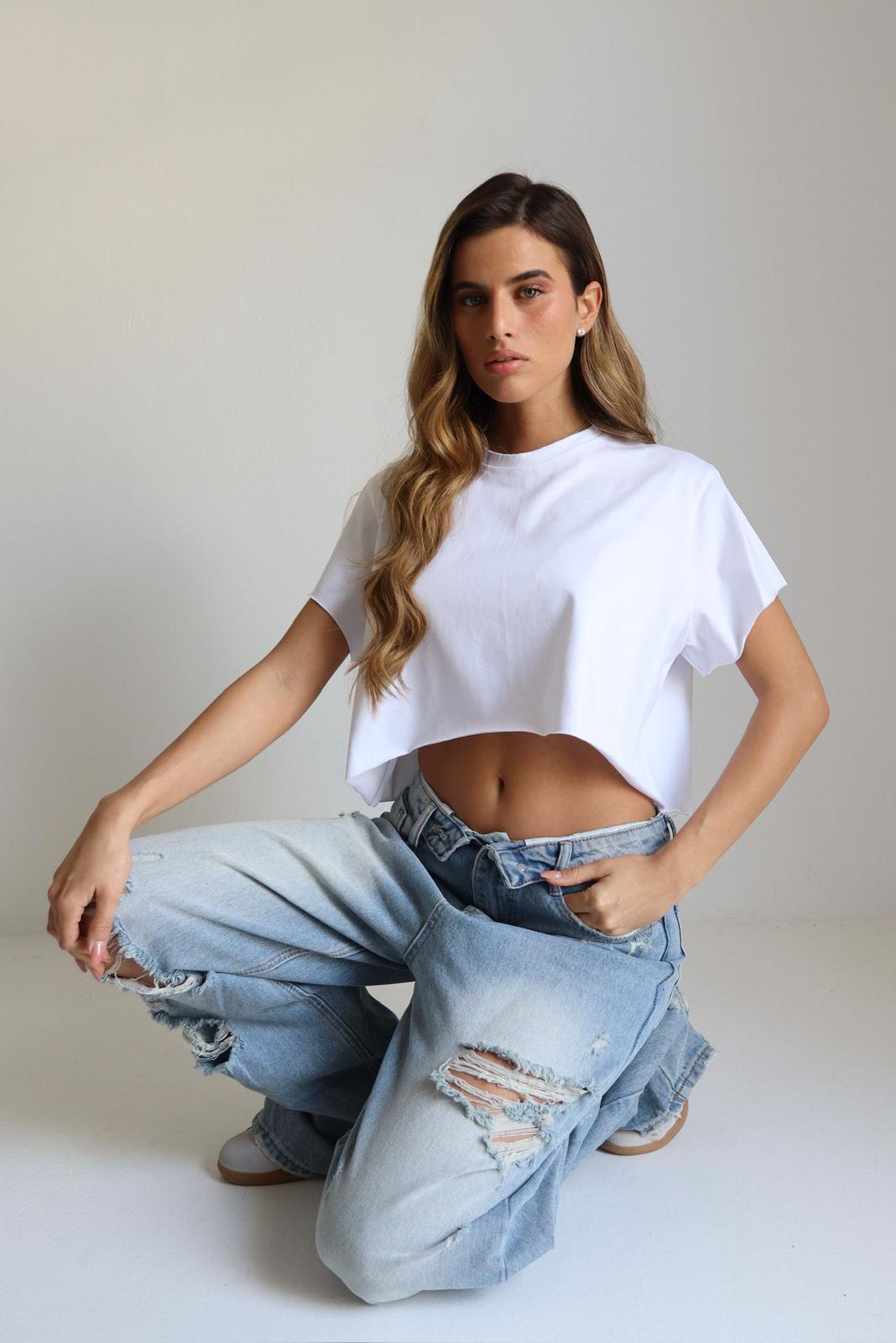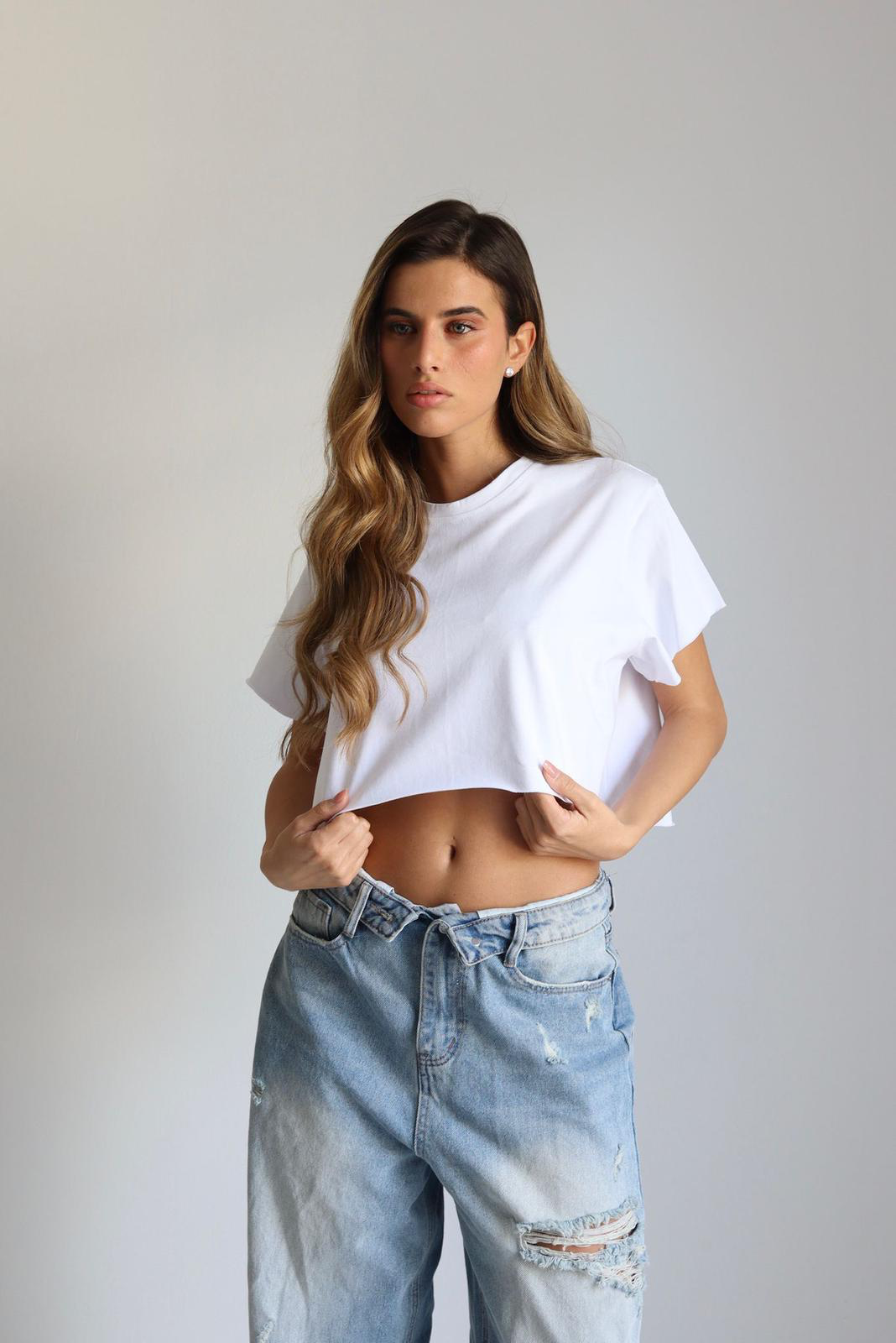 חולצה קרופ קיימת בצבעים: חמאה צהוב ורוד שחור לבן וחום.