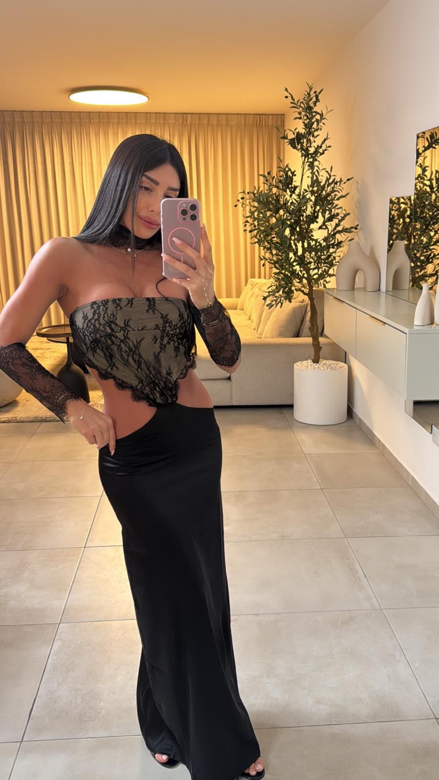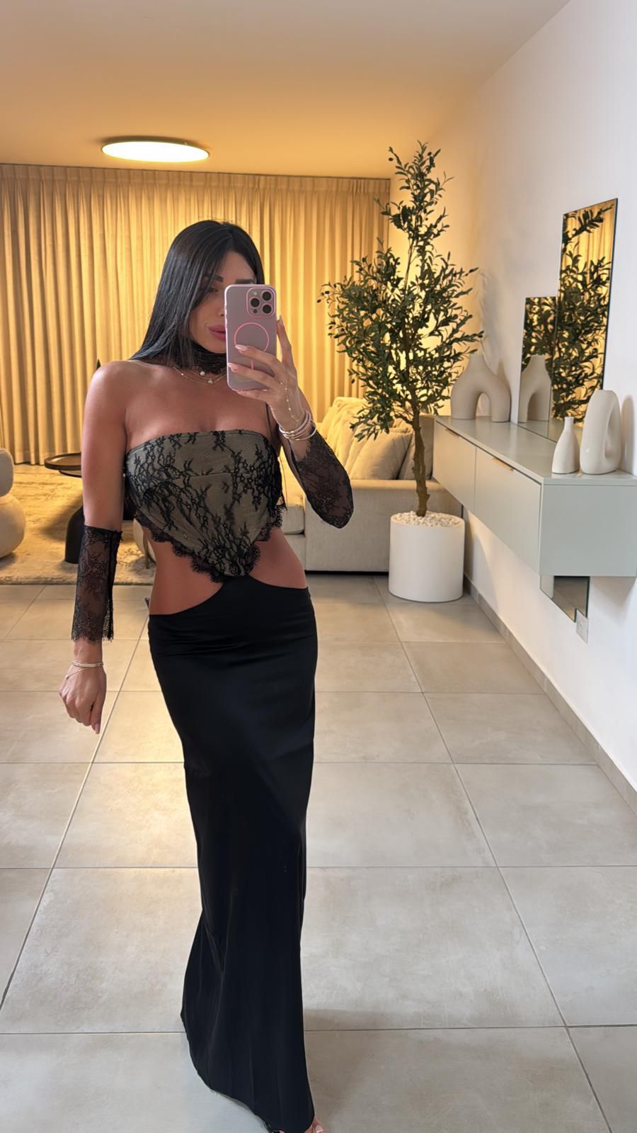 מגיע עם הקולר תחרה לצוואר ועם השרוולי תחרה