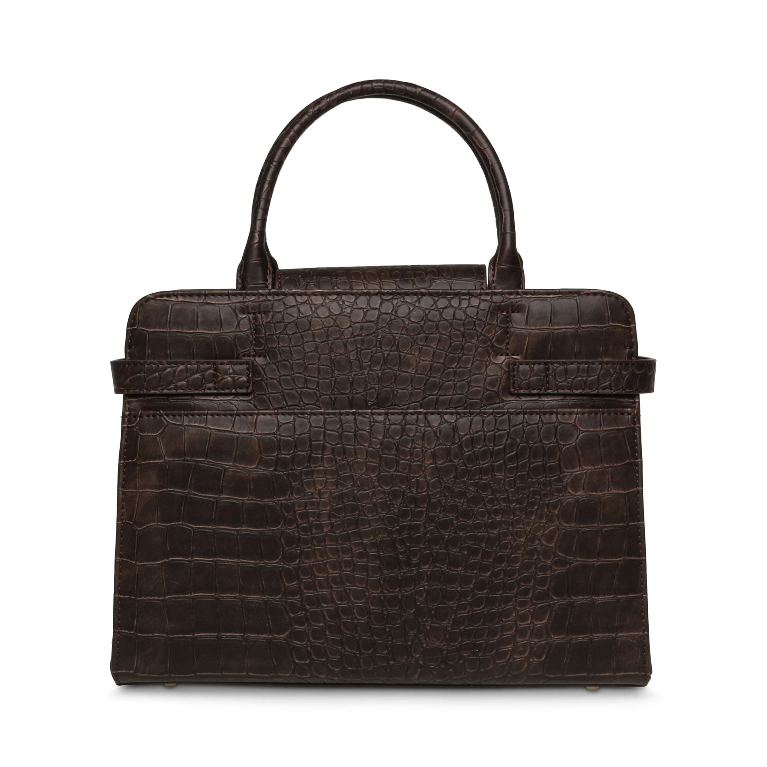 תיק יד לנשים בחום בטקסטורת קרוקו בשילוב אלמנטים מוזהבים ורצועת נשיאה לצד הגוף מבית סטיב מאדן