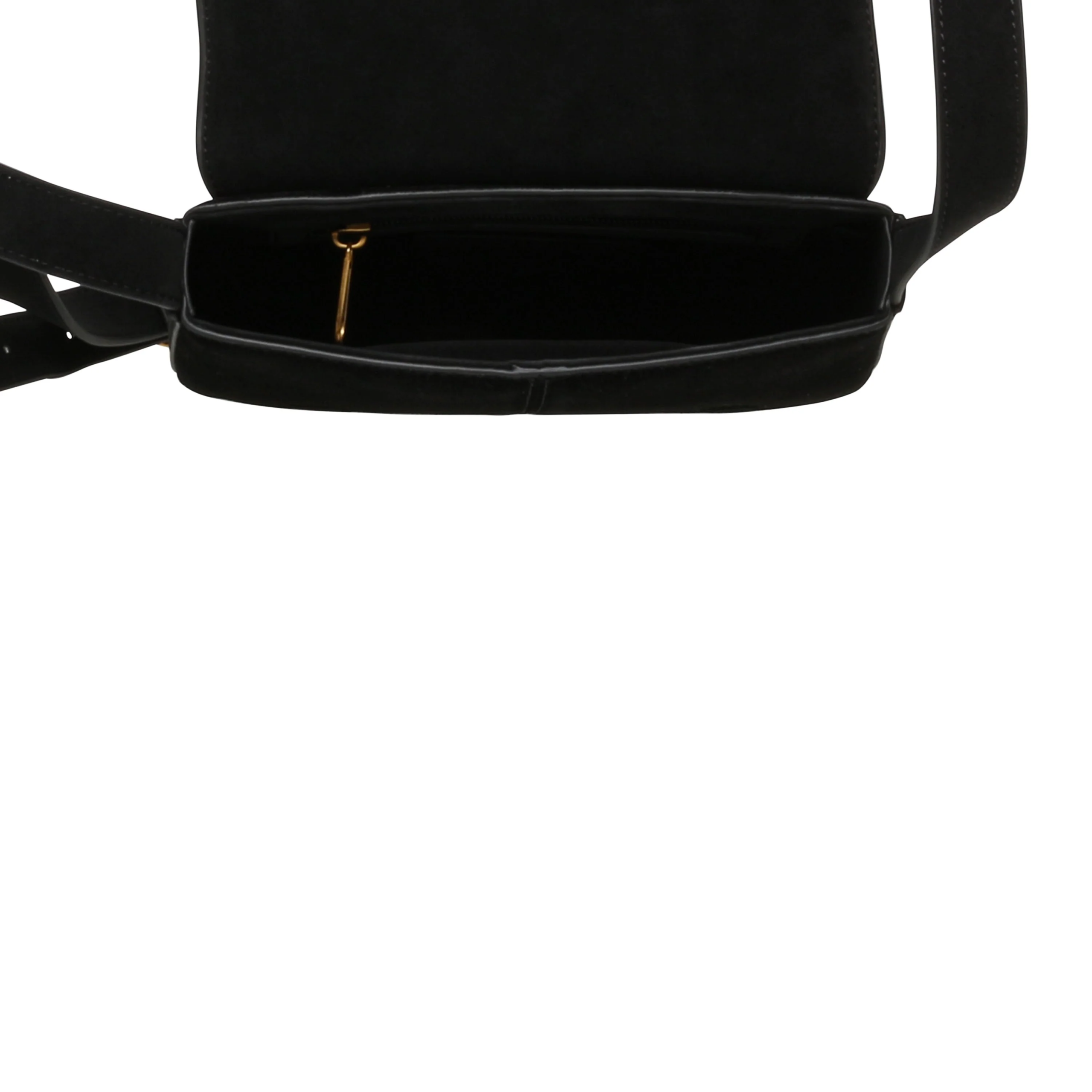 תיק צד מזמש בשחור עם אלמנטים מוזהבים מבית סטיב מאדן
