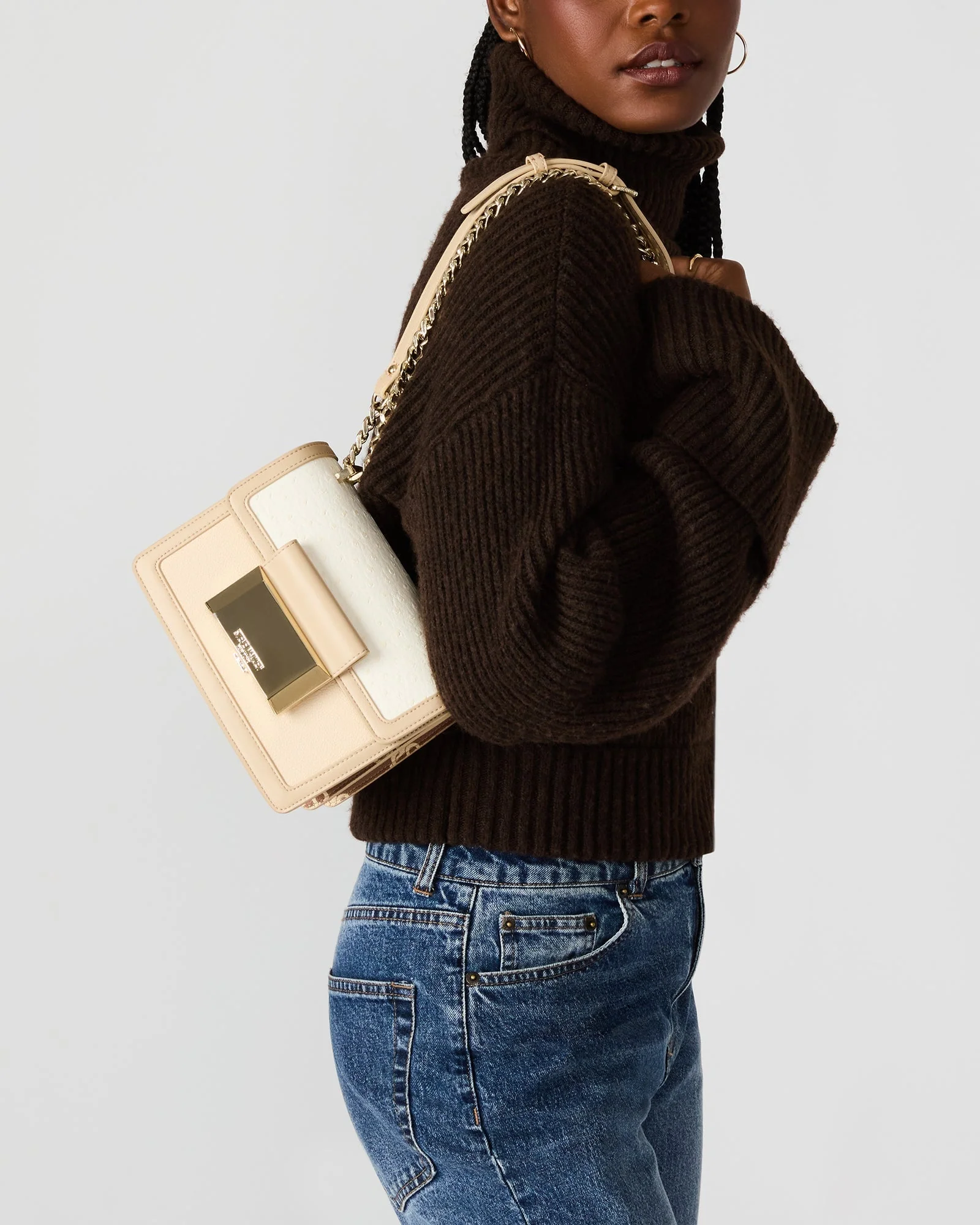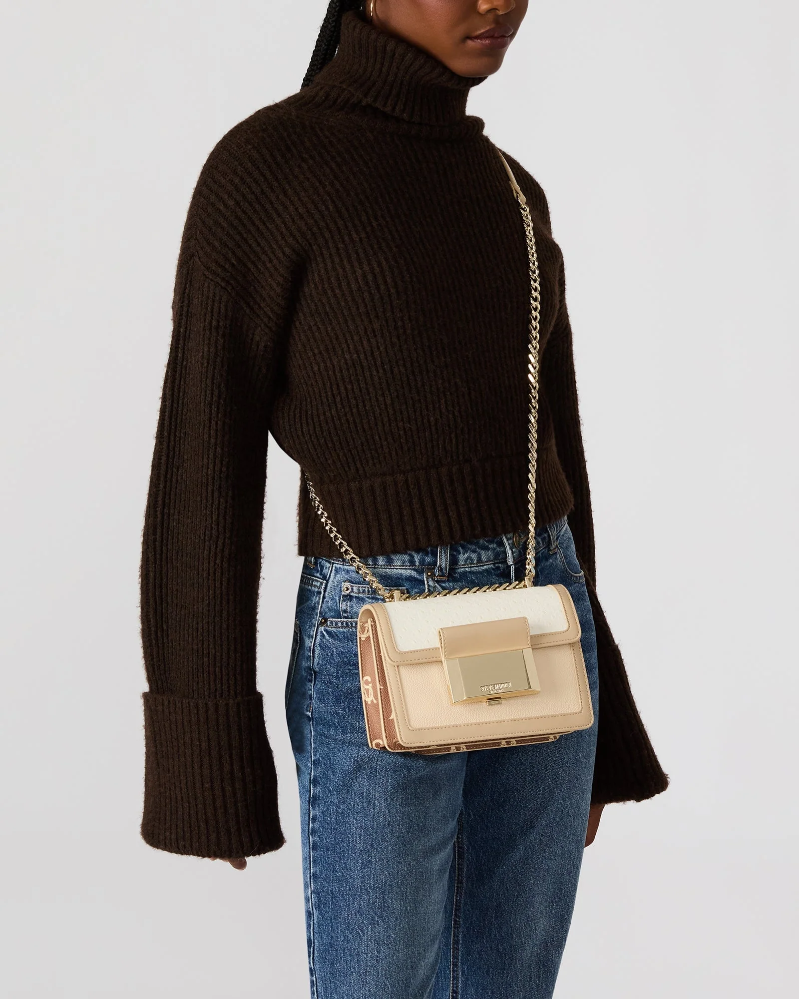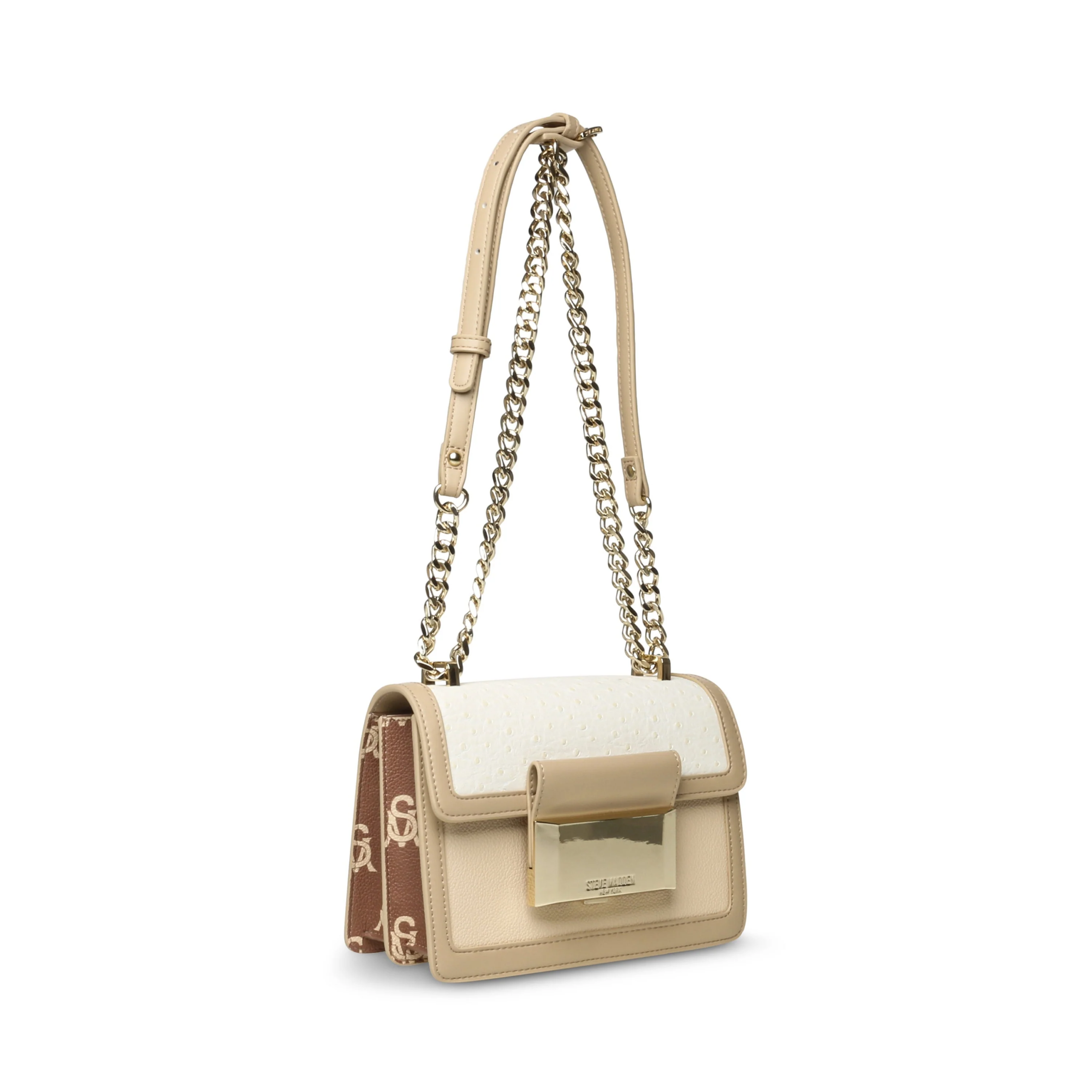 תיק צד לנשים בבז' משולב עם רצועת שרשרת מוזהבת מבית סטיב מאדן