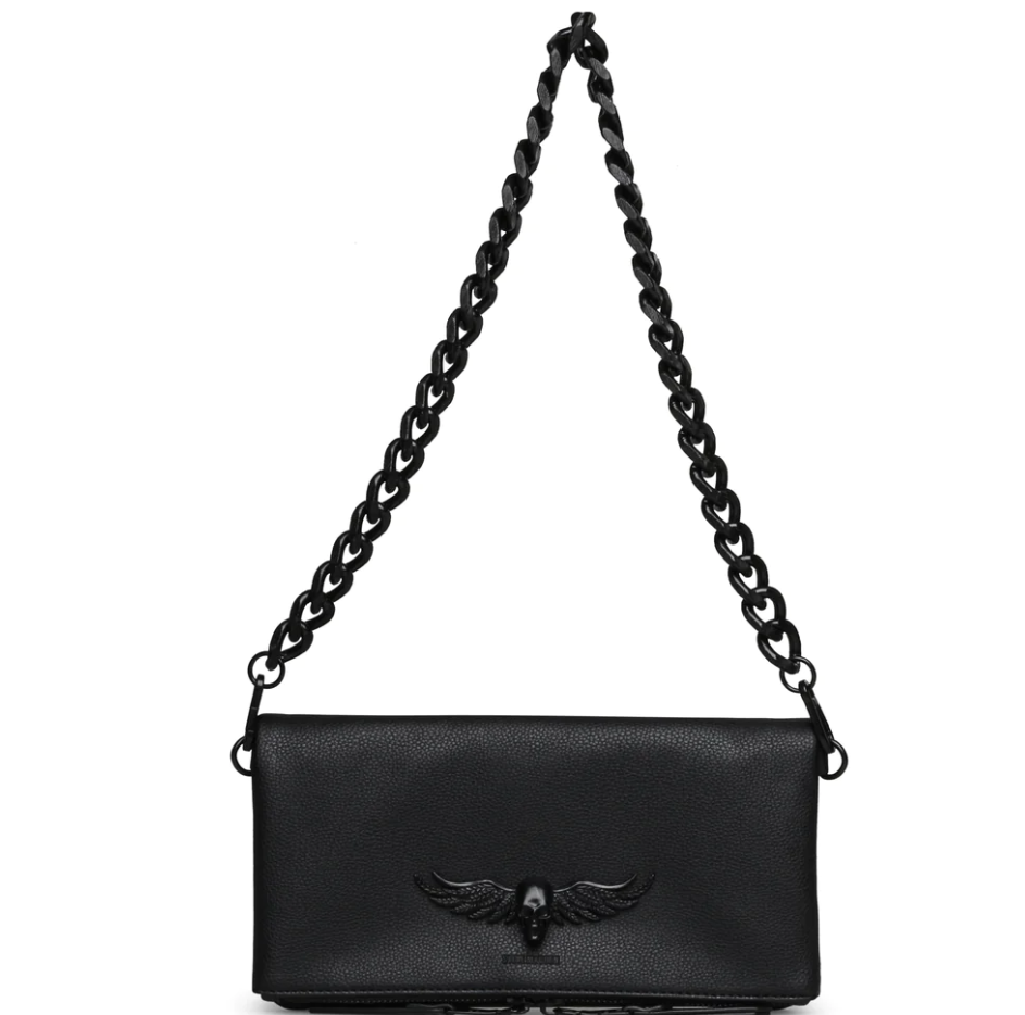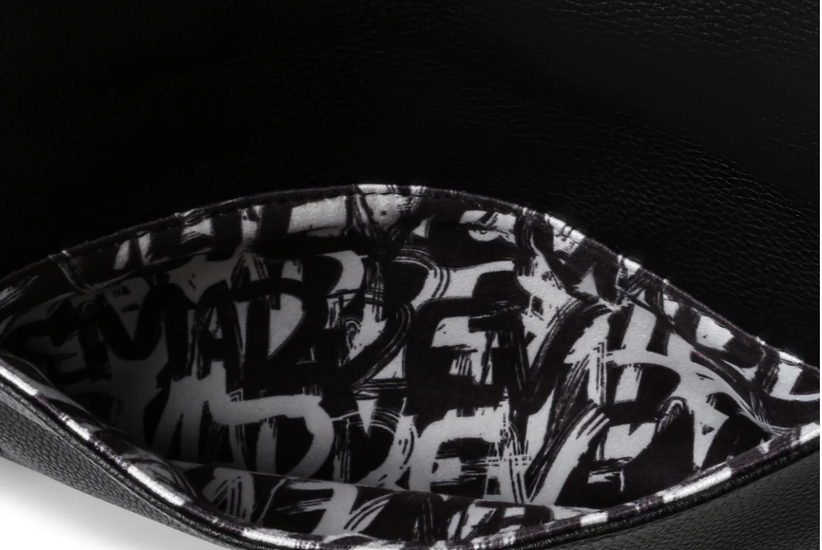 תיק צד קטן לנשים בשחור עם רצועת שרשרת ובטנה בגרפיטי שחור לבן מבית סטיב מאדן