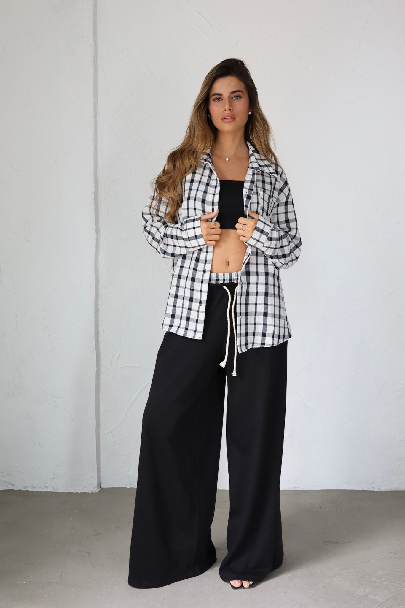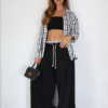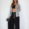 חליפת 3 חלקים טרנינג טופ ומכופתרת משבצות