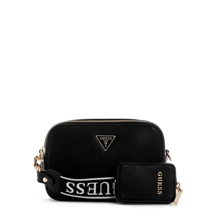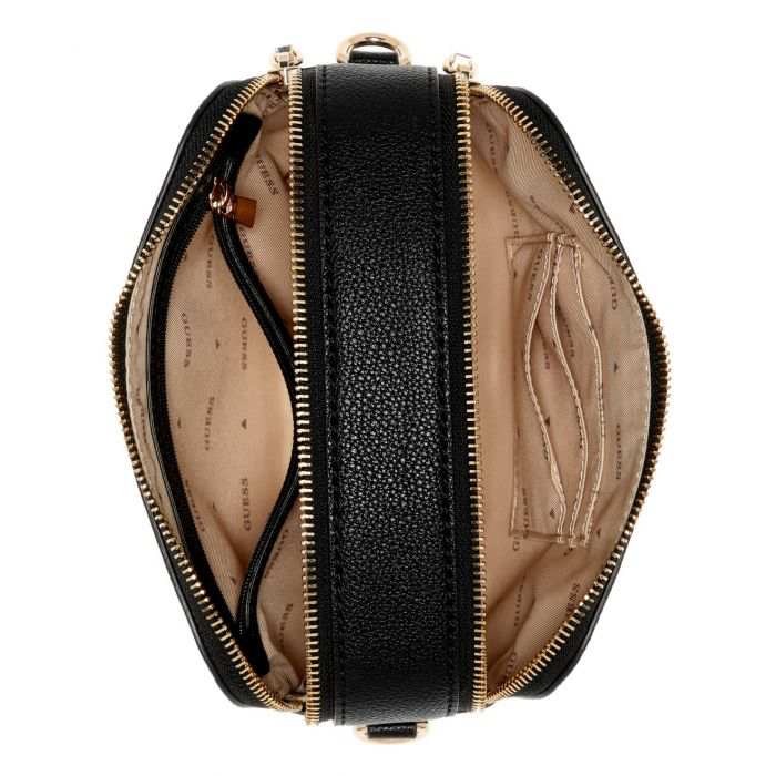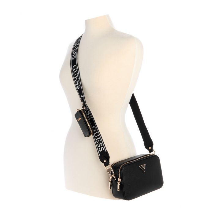 תיק צד קטן עם ארנקון נשלף, 2 תאים בסגירת רוכסן, כיסים פנימיים לסדר וארגון. רצועת צד נשלפת ומתכווננת, ממותגת בהדפס לוגו GUESS לכל אורך.