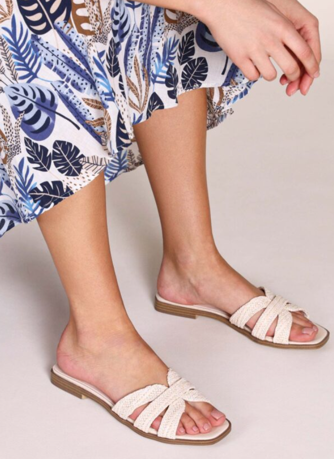 כפכף שטוח דמוי עור קלוע מקדימה,