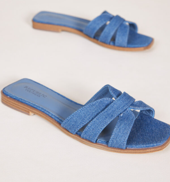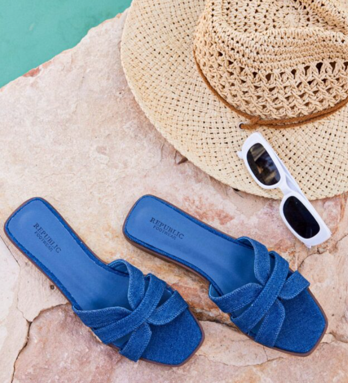 כפכף שטוח דמוי עור קלוע מקדימה,