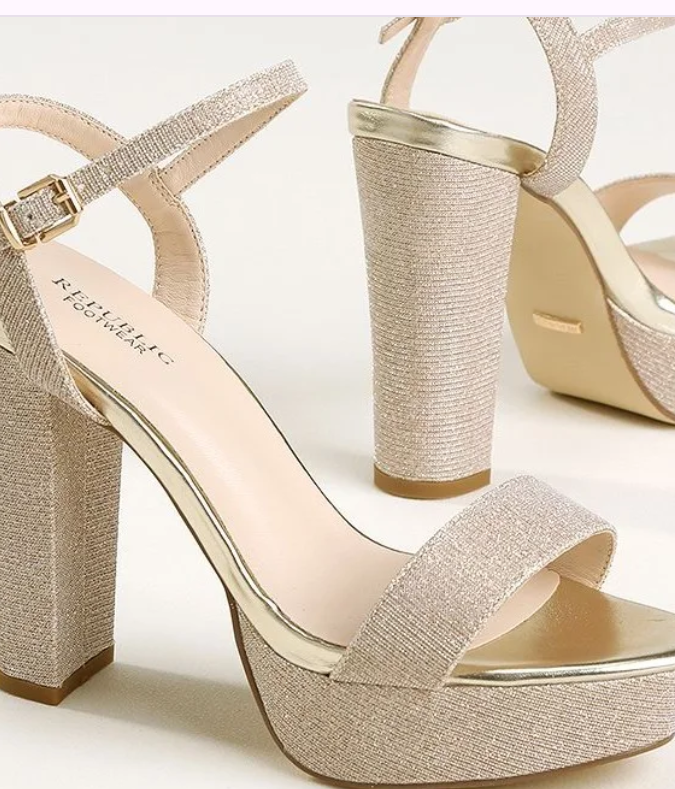 סנדל ערב עם רצועה לרוחב האצבעות ועוד רצועה דקיקה מסביב לקרסול הנסגרת בצד הרגל עם אבזם קטן.